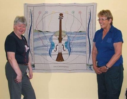 Christine Haynes and Pauline Elwell, Morar, with the panel theyhave sewn for the Great Tapestry of Scotland. This panel is entitled Gaelic Resurgence. |