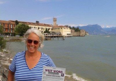 Billie Harbridge and husband Pete were on holiday from New Zealand to Europe where Billy is pictured with West Word at Lake Garda in Italy. Billie and Pete worled at Arisaig House for some months last year before returning home.