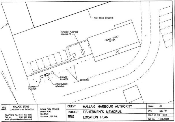 Quite a few people have been asking about the proposed site for the Fishermen's Memorial Statue and the drawing below shows what we at the Authority considers to be the best location. The new bollards are already in-situ and the Authority will be purchasing two or three large flower planters next Spring to augment the Memorial and bring a little colour to that area of the pier.
