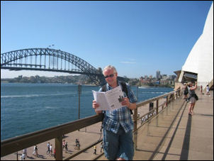 | Ian Macniven of Arisaig is pictured above left. Wife Grace says 'Why did we come back from Sydney? We were so tired of bright blue skies and sunshine - not! November West Word enjoyed its trip so much it stayed. Iain can be seen reading it beside the Opera House with the Harbour Bridge behind, then Stephanie Bridge (also of Arisaig but currently in Australia) was really pleased to be given it.' | |
