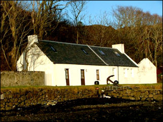 There is very little left of the 1885 pier - most of it now having been washed away by time and tide. The ferry store still stands and nowadays, is used as a boat shed. The swallows inhabit it as their Highland nesting place on their return from Africa each spring Tigh a' Phortair, the Porters House house was built in 1887 and 'am Phortair', Donald MacKinnon and his family took up residence there. Donald was married to Mary MacVarish, a sister of Domhnal dubh laidair, Mhingary. Donald served in this capacity for over 40 years and when he retired the position was taken over by his son John or, 'Iain a'Phortair', (Grandfather of Morag MacDonald, Ardfnafuaran, Arisaig.) With the opening of the railway in 1901, Iain's services were no longer required as 'am Phortair' at Rhu. Rejecting the offer of a similar post at MacBrayne's Glasgow depot, he elected to remain at home, running the family croft and bringing up his young family. He died at Rhu in 1938 at the age of 85 years.