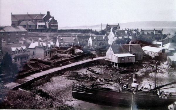 These two photographs help illustrate the quite dramatic changes that have occurred round by the site of the old village hall/Smiths beach. The “now” photograph was taken by Moe Mathieson in February 2016, some eighty or so years after the one below.
