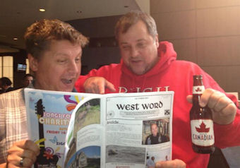 Arisaig's Steve Brown took his copy to Canada and showed it to his Canadian buddy Paul Beaulieu in the Westin Harbour Castle Hotel in Toronto. Keen fan Steve flew to Canada to see his favourite band Rush play two gigs in their home town. See how the issue is cunningly showing the advert for the Songs for Dawn Charity Night Steve is organising on the 16th November in the Astley Hall!