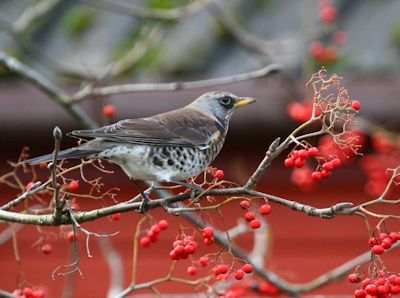 Photo Mike KingswoodFlocks of Fieldfare and Redwings appeared from the 11th, with some very large flocks of mostly Fieldfares (below) from the 3rd week quickly stripping the Rowan berries.
